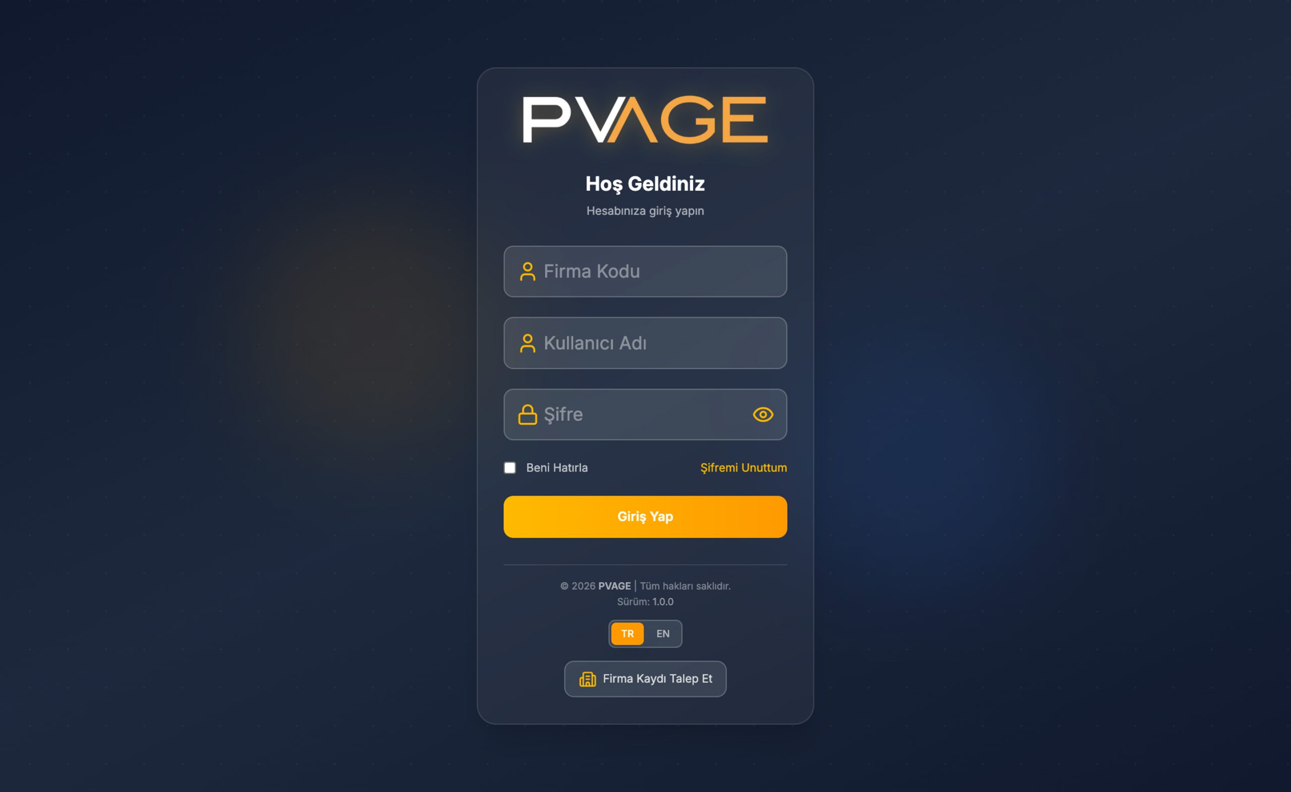 Firma kodunuzu kullanarak PV AGE’e zahmetsizce giriş yapın.