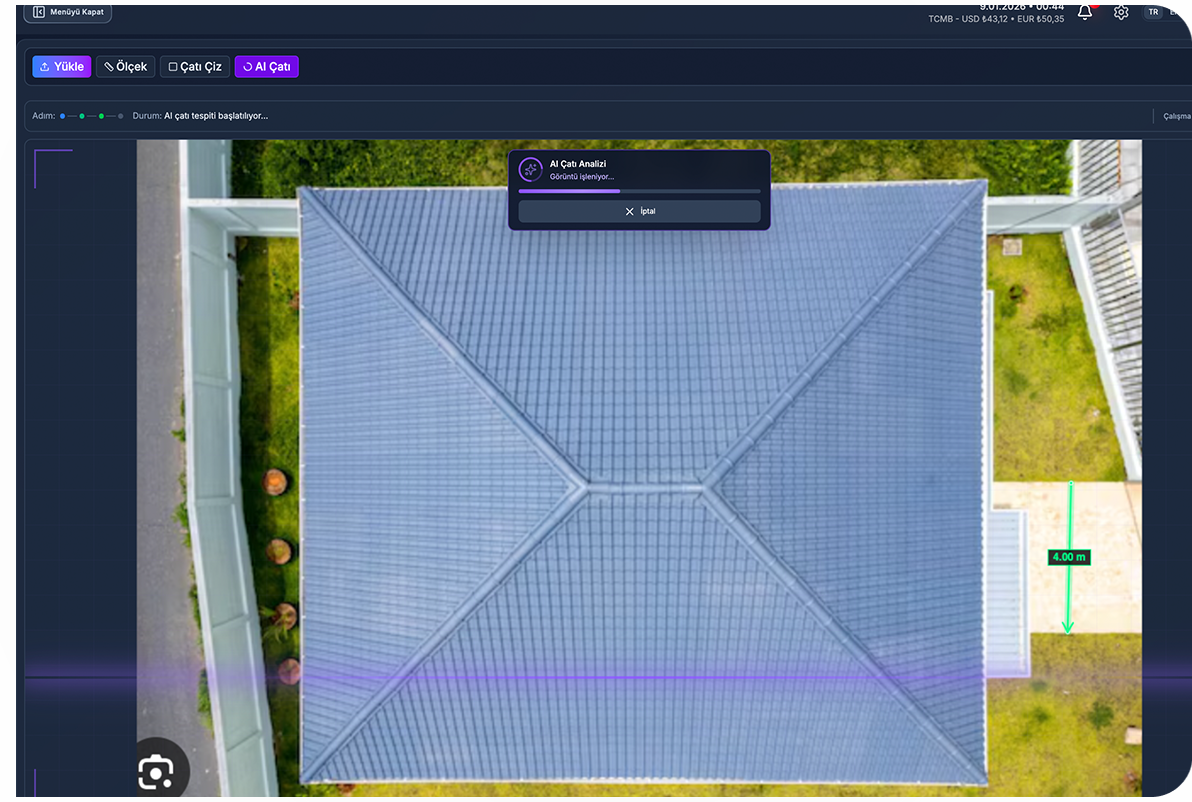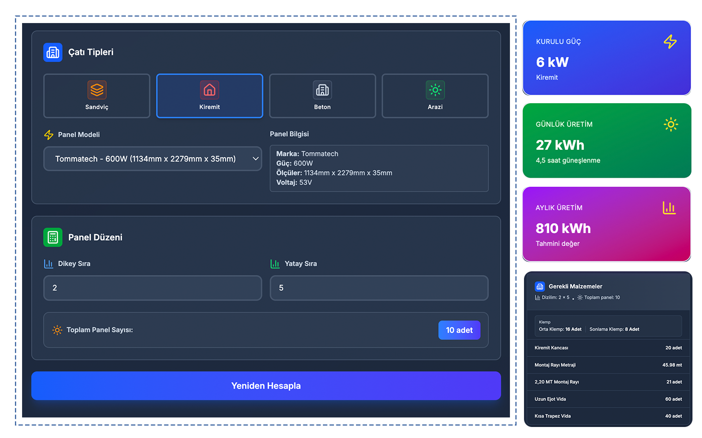 Kullanıcı dostu arayüzü sayesinde teklif oluşturma, 3D çatı modelleme, amortisman ve raporlama işlemlerini hızlı ve kolay şekilde gerçekleştirirsiniz.