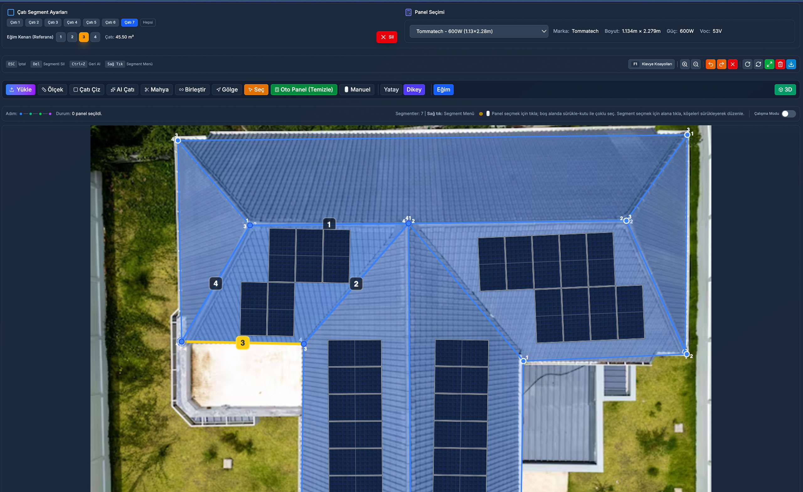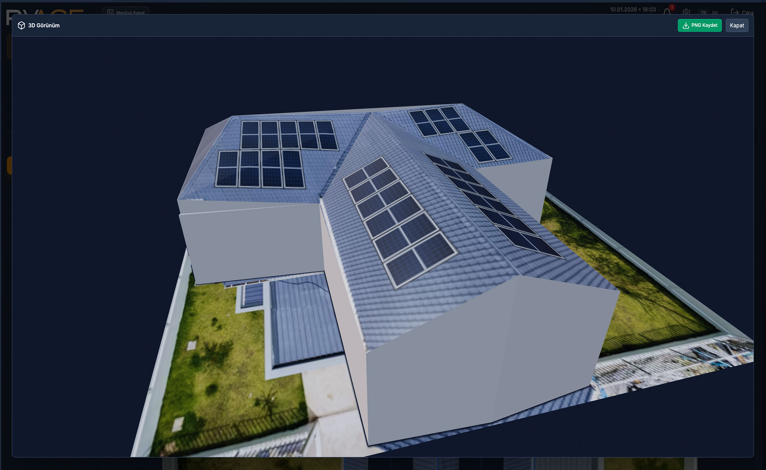 Çatıdan araziye, milimetrik panel yerleşimi tek tıkla hazır.