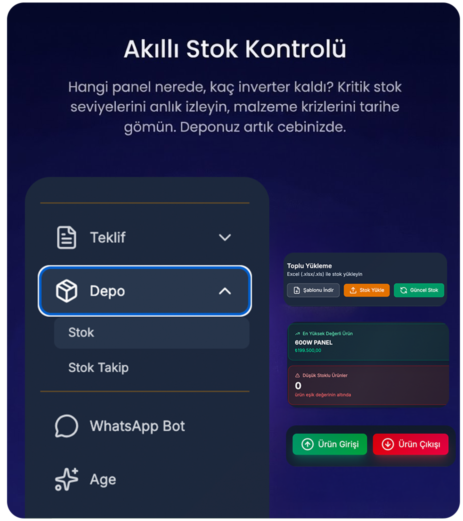 Güneş enerjisi projelerindeki karmaşayı, yapay zekanın netliğiyle değiştirdik. Türkiye'nin ilk yapay zeka destekli solar asistanı olarak; tekliften kuruluma, sahadan ofise tüm süreçleri tek bir merkezde birleştiriyoruz. Biz sadece bir yazılım değil, solar mühendisliğinin en hızlı ve en akıllı haliyiz.